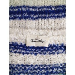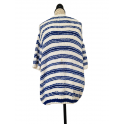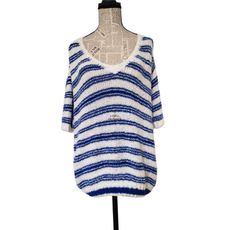 Pull oversize doudou coton American Vintage EMO18A blanc bleu L NEUF