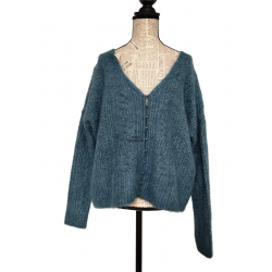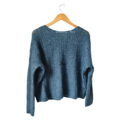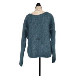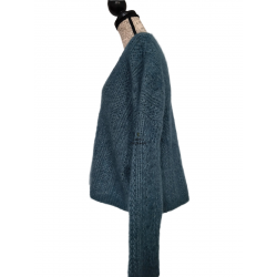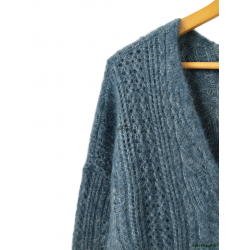 copy of Gilet épais doudou ajouré 64% laine kid mohair Sézane Lison L vert NEUF
