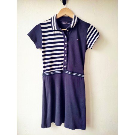 Robe polo coton Tommy Hilfiger XS S NEUF marnière bleu marine blanc
