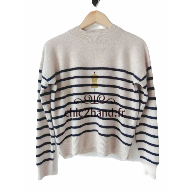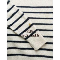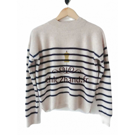 Pull marin 100% pure cachemire comptoir des cotonniers XS jolimer rayure beige bleu TBE