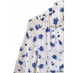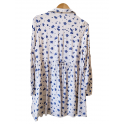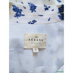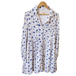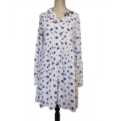 Robe manches longues pli blanc fleuris bleu Sézane S fr36 TBE