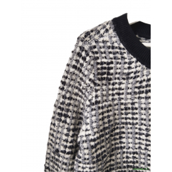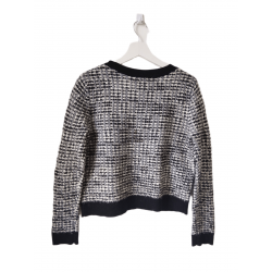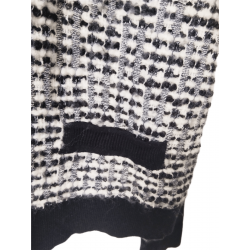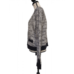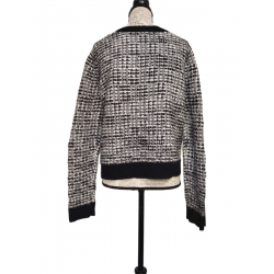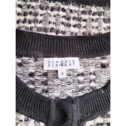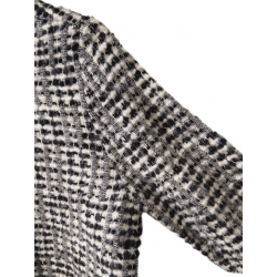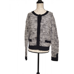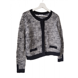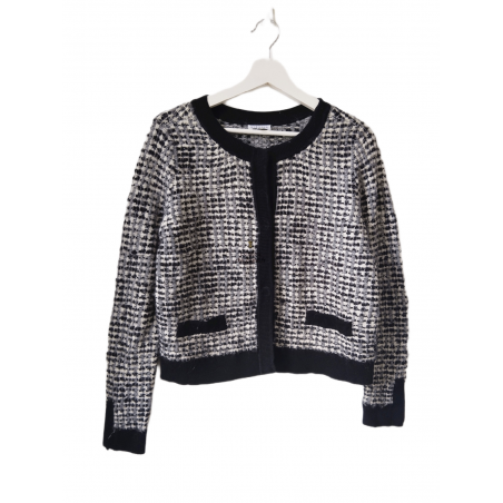 Gilet cardigan doudou court coton laine Claudie Pierlot T3 noir blanc argenté TBE