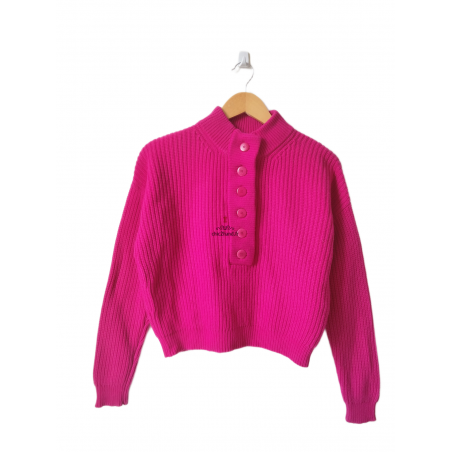 Pull col montant laine coton Sézane S rose fuchsia Neuf
