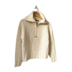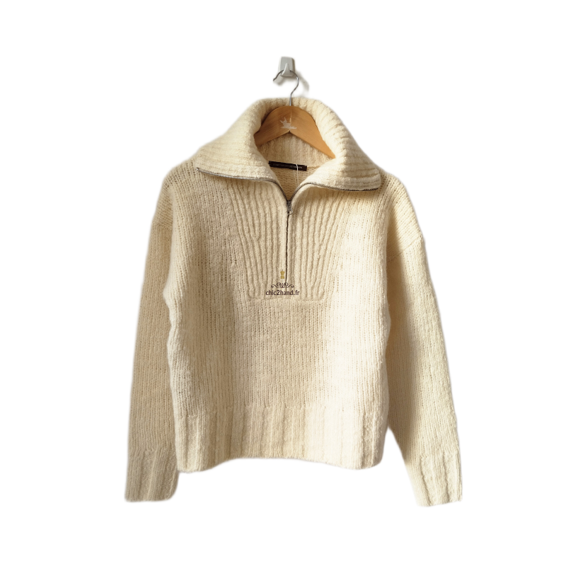 Pull Oversize col zippé 88% laine comptoir des cotonniers S NEUF blanc écru
