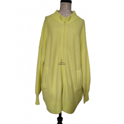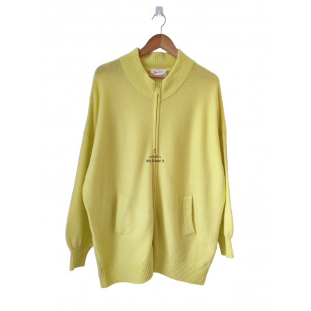 Gilet cardigan oversize zippé laine American Vintage damsville dam19C jaune fluo TU NEUF