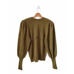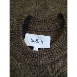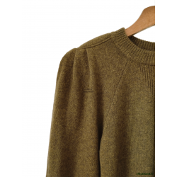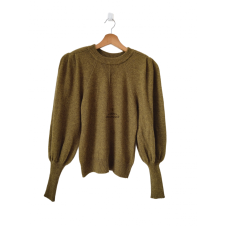 Pull épais doudou manches ballon 100% laine Ba&sh T0 vert olive NEUF