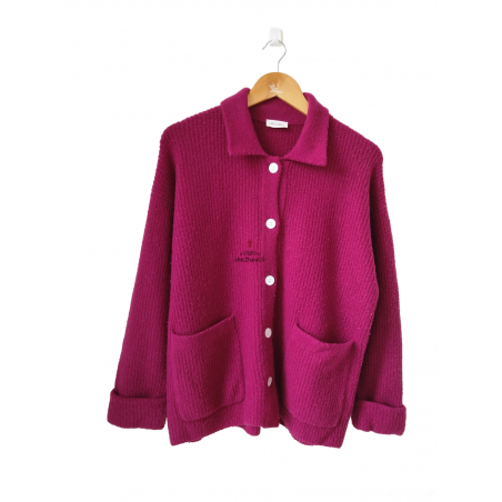 Gilet cardigan oversize laine American Vintage domy19a domy XS S violet rose TBE