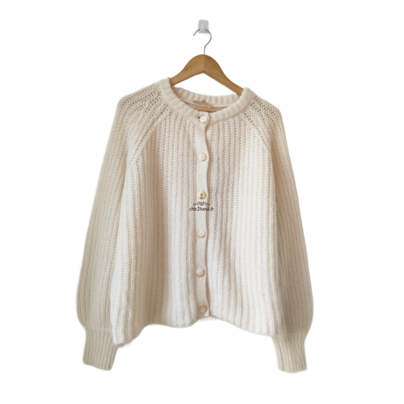 Gilet épais doudou ajouré laine alpaga Sézane XL blanc crème NEUF