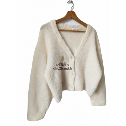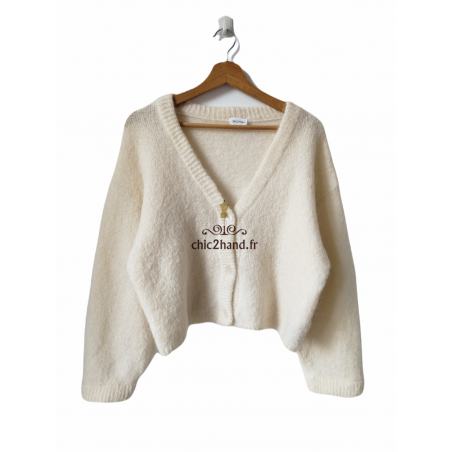 Gilet cardigan oversize 53% mohair American Vintage pino19C L blanc écru NEUF