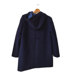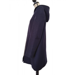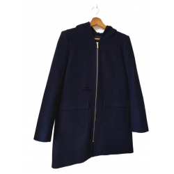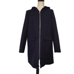 Manteau 80% laine avec capuche zippe Tara Jarmon FR38 bleu marine NEUF