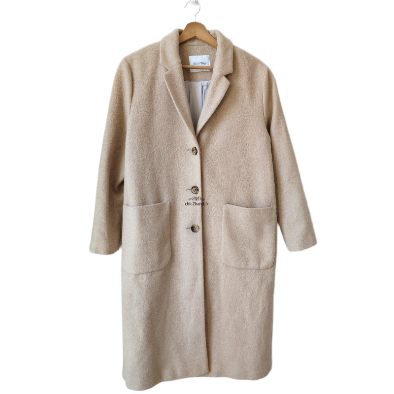 Manteau oversize laine American Vintage Beb402 M Beige Neuf