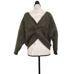 Pull FILL dos décolleté épais doudou Ba&sh T0 vert kaki NEUF