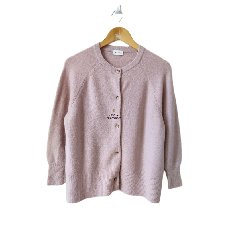 Gilet cardigan oversize laine American Vintage dam19a rose poudré XS S TBE