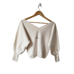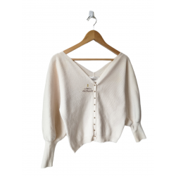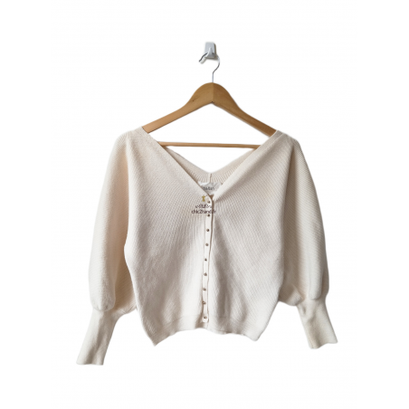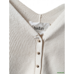 Gilet cardigan oversize doudou col V laine coton Ba&sh Hazel T0 blanc TBE