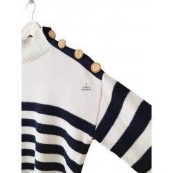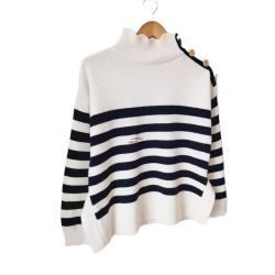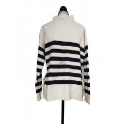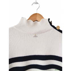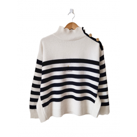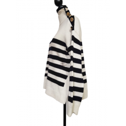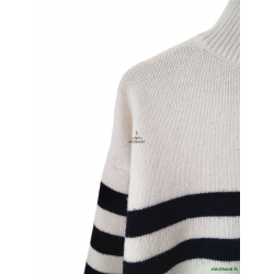 Pull épais doudou 67% laine col montant Claudie Pierlot T2 noir blanc TBE