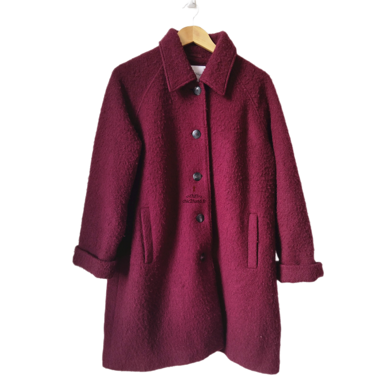 Manteau oversize laine American Vintage Zali17A XS S bordeaux lie de vin NEUF