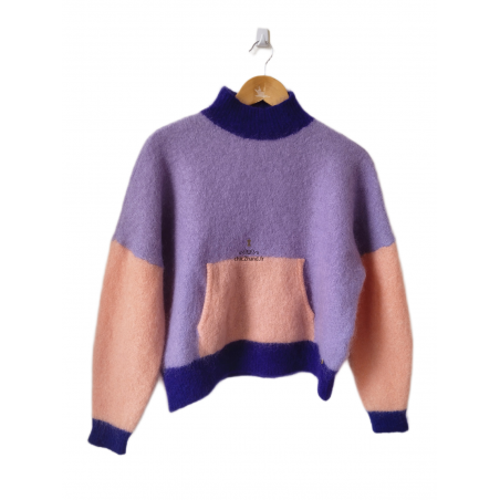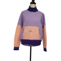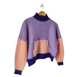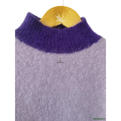 Pull oversize col montant laine kid mohair Des Petits Hauts Aleon T1 violet rose TBE