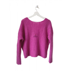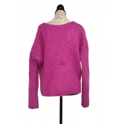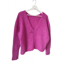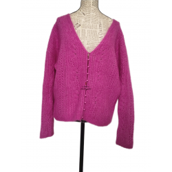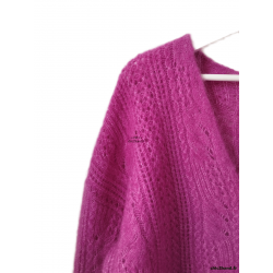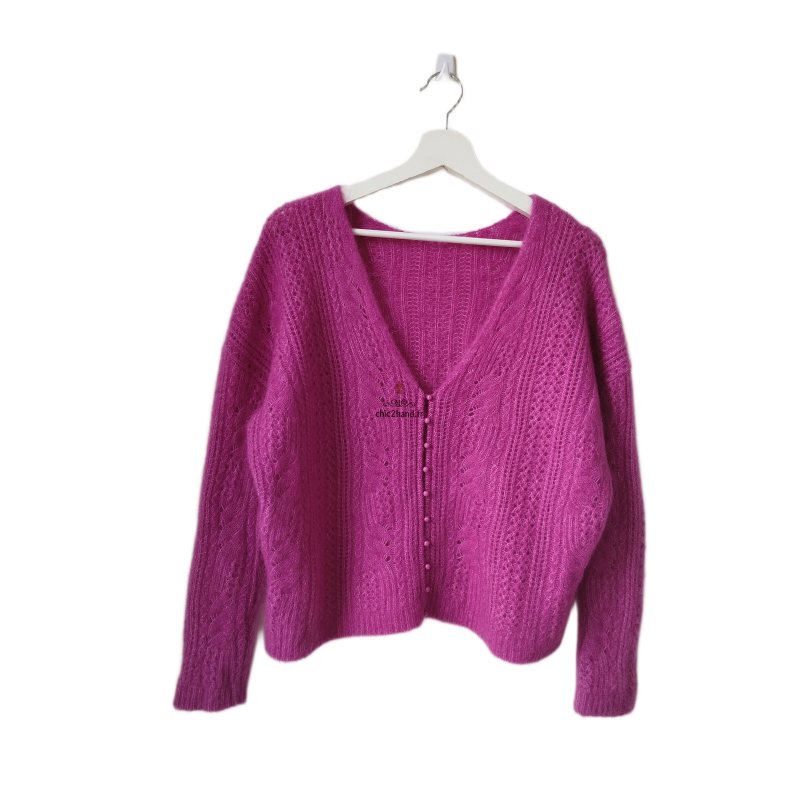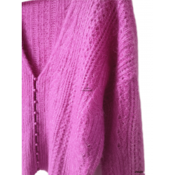 Gilet épais doudou ajouré 64% laine kid mohair Sézane S violet NEUF