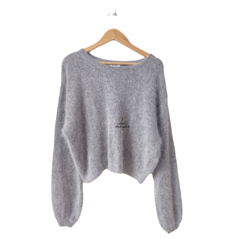 Pull oversize 50% angora American Vintage miti236 M L mitibird gris perle TBE