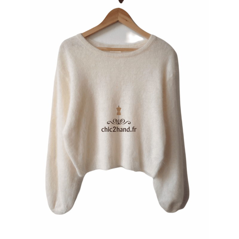 Pull oversize 50% angora American Vintage miti236 XS S mitibird blanc crème Excellent état